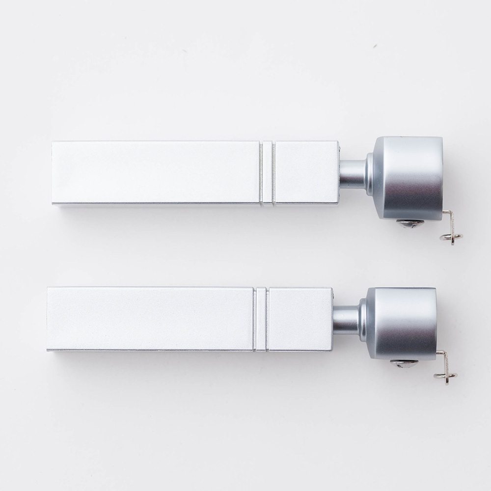一般的なレールより3cm程度取り付け位置を高くしているので、窓からの光もれ・冷気・暖気を防ぐ構造になっています。2本のビスでしっかり取り付けながらも、取り付けビスを隠すデザイン性にもこだわったブラケット。